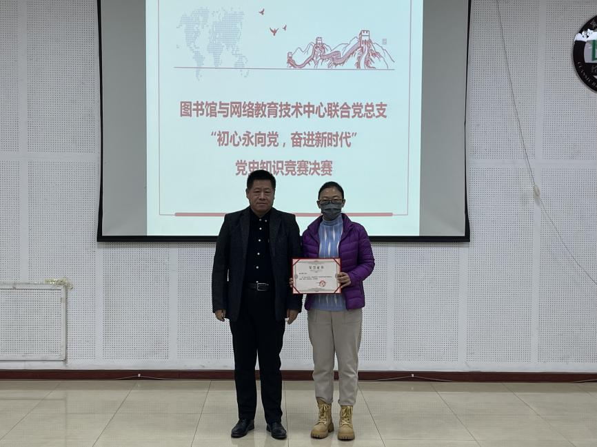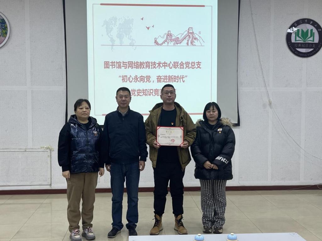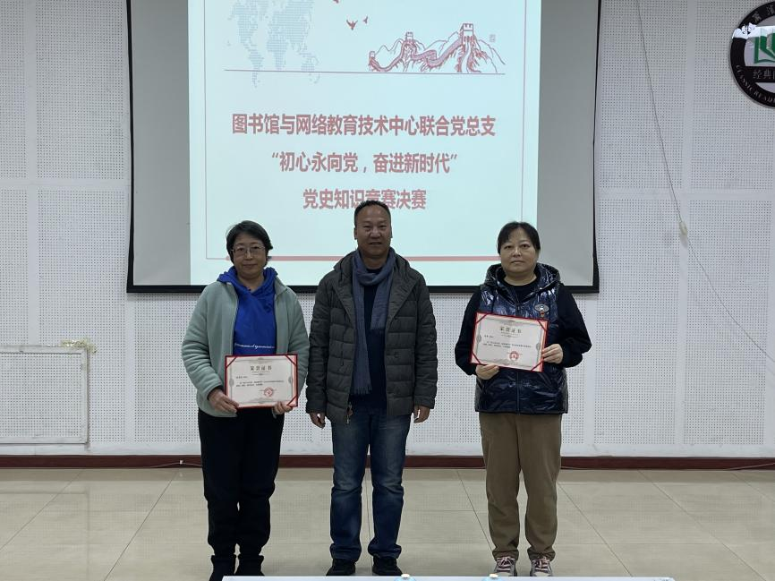 为深入学习贯彻习近平总书记关于党史学习教育的重要讲话精神,推动党史学习教育走深走实,引导广大党员干部和群众深刻认识中国共产党的光辉历程和伟大成就,11月13日上午,“初心永向党 奋进新时代”图书馆与网络教育技术中心联合党总支党史知识竞赛决赛在图书馆学术报告厅成功举办,经过紧张而激烈的角逐,图书馆党支部代表队获第一名,网络与教育技术中心党支部代表队获第二名。